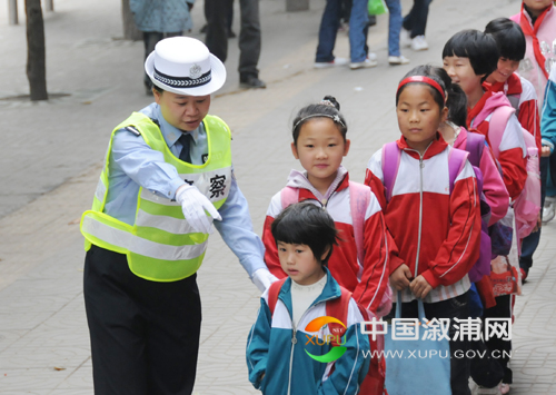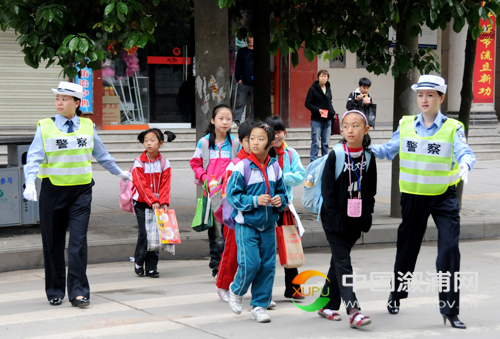 5月16日清晨,溆浦县交警大队女警员在县警予学校门口护送学生安全入校。去年以来,该县交警大队在城区学校门口和附近路段增设了“交警护学岗”,为师生开辟“安全”绿色通道,成了师生安全出行的“护卫天使”。