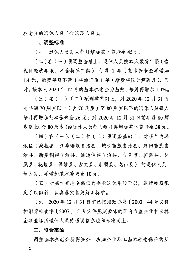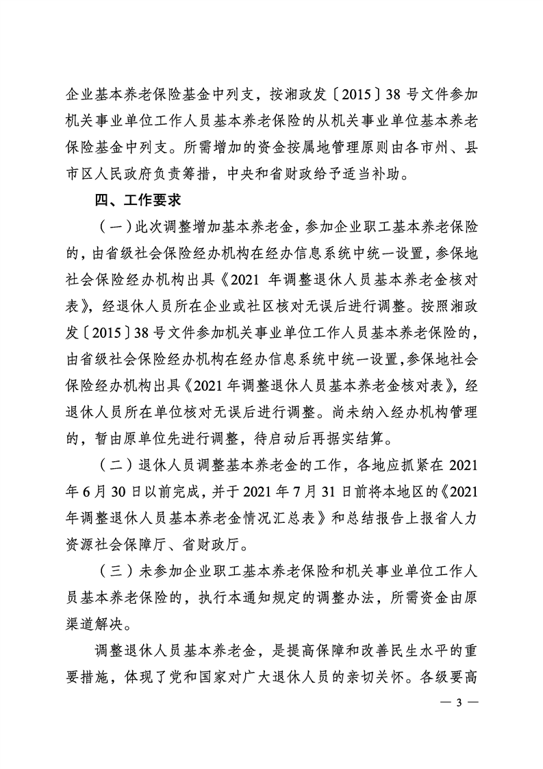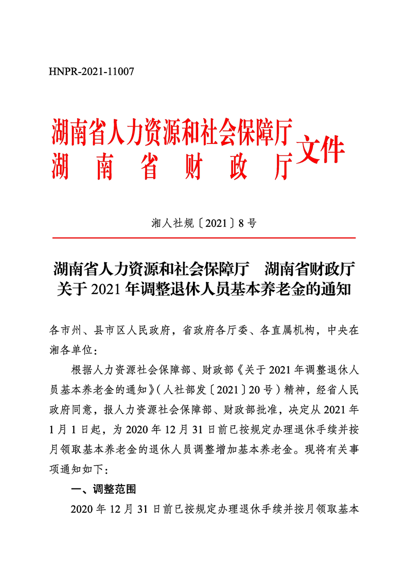 湖南省人力资源和社会保障厅湖南省财政厅关于2021年调整退休人员基本养老金的通知