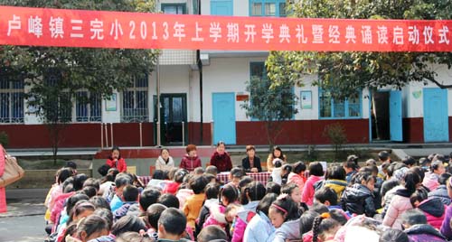本网讯(通讯员 黄清英)3月4日,三完小隆重举行开学典礼暨经典诵读活动。