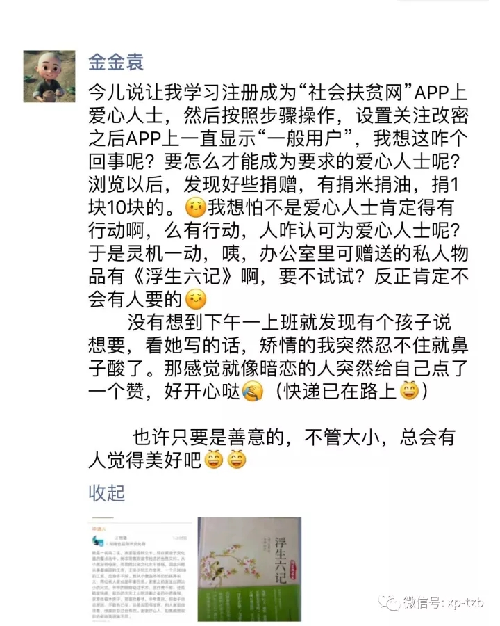 “虽然她在物质上很缺乏,但她还有一颗向上学习的心,我们可能永远也无法想象,这本书对这个孩子的重要性,但或许对于她来说是最需要的东西,所以我毫不犹疑联系快递寄送给她。”袁珍珍说出了将自己书籍捐赠出去的初衷。