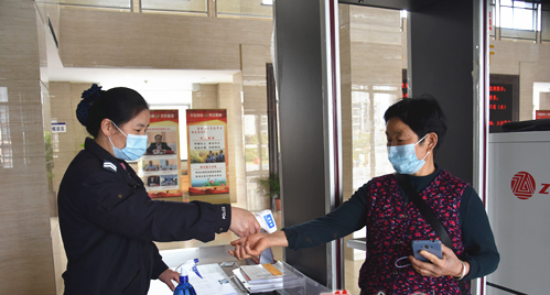 严格管控出入通道。该院在办公楼设置体温检测岗,要求来院办理业务的人员必须佩戴口罩,逐一测量体温、查验健康码和行程码、登记身份证和手机号码,对体温异常、非“绿码”人员不允许进入办公场所,守好疫情防控第一道门。