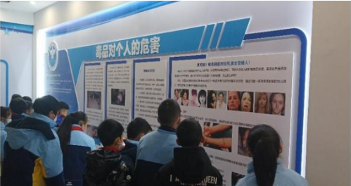 在老师们的引领下,该校四年级五十多名学生整齐有序地前往禁毒科普教育馆。解说员从中国禁毒历史、毒品的种类、毒品的危害及当前毒情形势等方面进行了详细地讲解,并用生动的图片、文字和实物,全方位展示了毒品的危害。让学生们直观、深入、形象地认识毒品,了解毒品对个人、对家庭、对社会的严重危害。