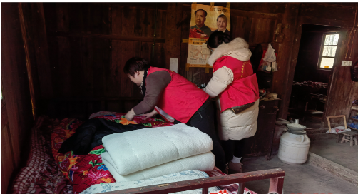 交通不便,路途艰辛,工作人员扛着棉被、油、大米等慰问物资步行到达何先友、何先军老人家中,为其打扫卫生、整理房间,还与老人们进行亲切交谈,详细了解他们的身体健康状况、生产生活情况和困难需求,反复叮嘱老人冬季用火、用电、用气安全,用政策排忧解难,用真情温暖民心。