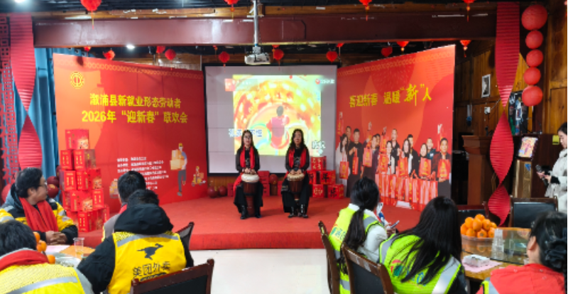 腊月迎春,情暖人心。1月26日,由溆浦县总工会指导、溆浦县新业态行业工会联合会主办的新就业形态劳动者2026年“迎新春”联欢会举行。来自县内快递员、外卖配送员、网约车司机、电商运营者等50余名新就业群体代表欢聚一堂,在歌舞与欢笑中共迎新春,感受“娘家人”的深切关怀。