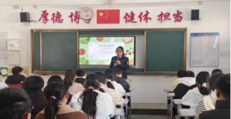 为全面筑牢校园食品安全防线,增强青少年群体食品安全防范意识和自我保护能力,新学期开学以来,县市场监督管理局聚焦校园主阵地,积极开展“食品安全进课堂”主题宣传活动,讲课中,工作人员以生动有趣的图片和通俗易懂的语言,深入浅出地向师生们讲解了什么是“三无食品”、食用垃圾食品的危害、网络订餐安全、怎样做到科学饮食、如何消费维权、如何预防食品中毒及自我处置等方面的知识。