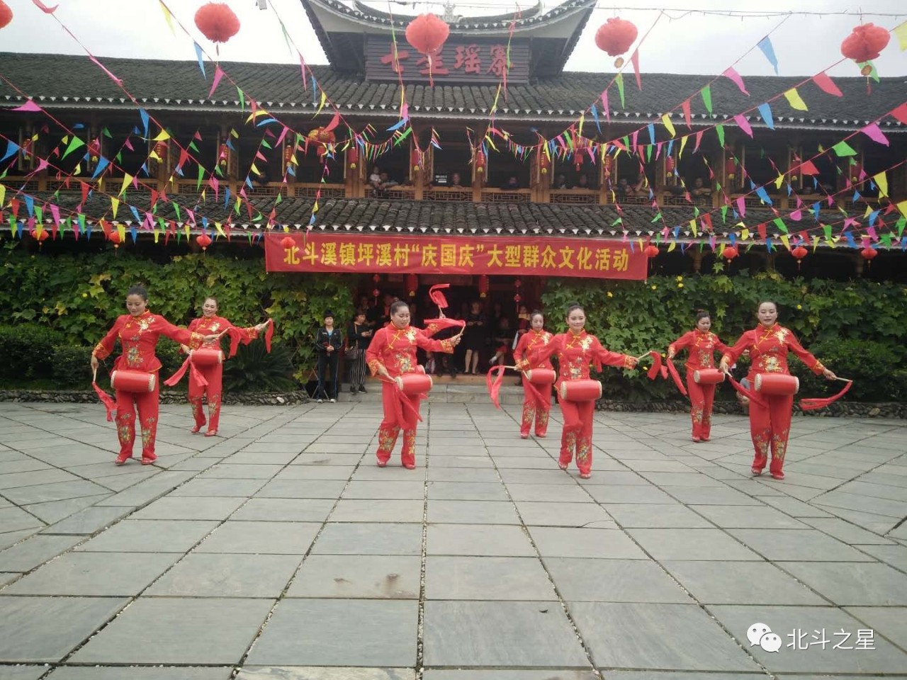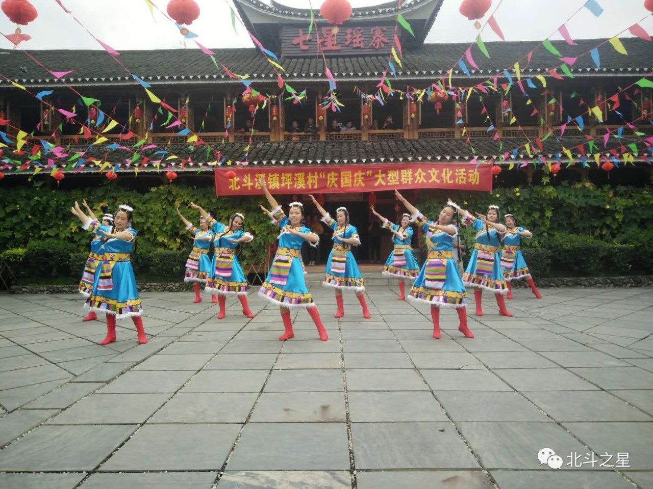 为庆祝祖国69周年华诞,丰富人民群众精神生活,9月28日,北斗溪镇坪溪村举办“庆丰收、迎国庆”大型群众文化活动。活动在坪溪村七星瑶寨举行,以竞赛的形式开展了拔河、跳绳、广场舞、象棋等项目,现场气氛热烈,表演精彩纷呈。