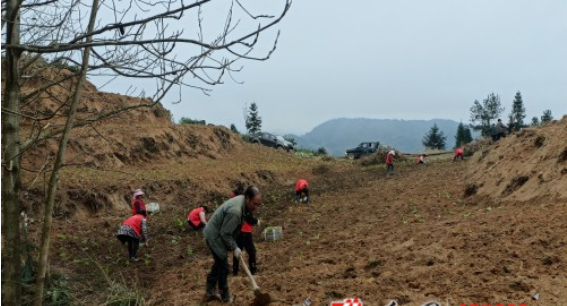 村民翻耕荒地栽种庄稼