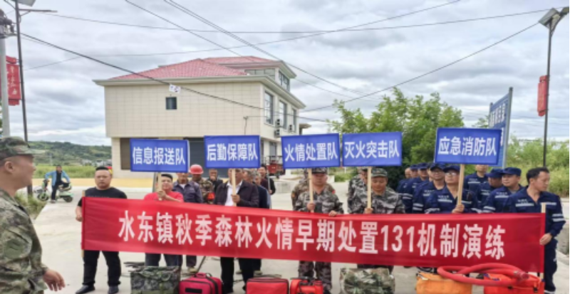 为全面提升民兵队伍在复杂环境下的实战响应能力,9月24日,水东镇武装部组织开展了2025年森林防灭火应急演练。镇党政领导、武装部民兵、应急消防队、派出所、卫生院及各村应急分队共计70余人参加,重点围绕“131”应急处置机制展开全流程实战检验。