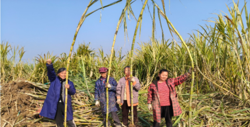 据甘蔗种植大户石小玲介绍,今年阳光充足,加上科学管理,甘蔗长得特别壮实,糖分足、口感好,她今年种植了30多亩甘蔗,亩产可达1万斤左右,在采收过程中有邵阳、娄底、新化的老板上门过来收购,收入相当可观。