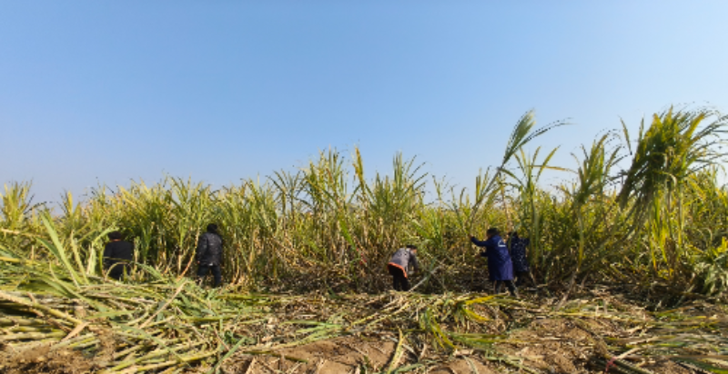 时下,正是甘蔗砍收旺季,在我县双井镇官庄村的甘蔗种植基地呈现一派繁忙的丰收景象。一排排甘蔗笔直挺拔、长势喜人,蔗农们穿梭其间,熟练地采挖甘蔗、然后削叶、捆扎、堆放,将一捆捆甘蔗搬上车厢,发往全国各地市场,空气中弥漫着丰收的喜悦。