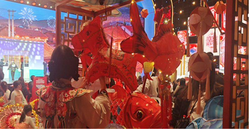 为适应电视舞台的视觉效果,谌鲲鹏与黄夏茵专门为节目设计制作了三组新灯:“马灯”寓意骏马踏春、喜乐安康,“吉祥鱼灯”寄托年年有余,仿古“转灯”则象征财源广进、可推可转。他们在保留传统工艺的基础上,融入现代审美与舞台表现元素,使灯彩既承载古韵,亦具新意。