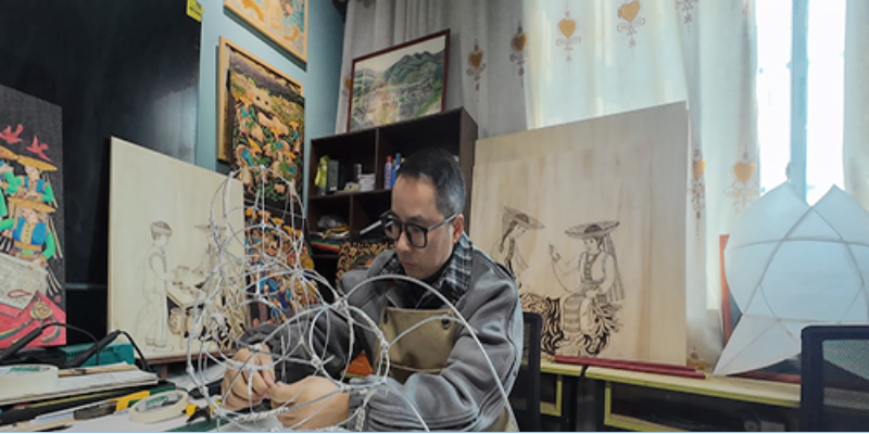 作为土生土长的龙潭人,溆浦县龙潭镇塔塔拉非遗文创工作室设计师谌鲲鹏对故事灯充满感情:“从小过年,就看老一辈人做各种鱼灯、生肖灯上街表演,大人带着我们去看,那种热闹的氛围,深深印在我们这代人心里。”