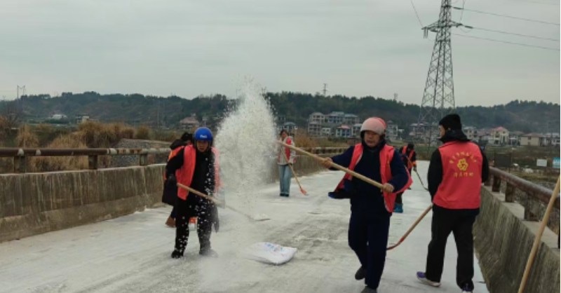 1月21日,受低温天气影响,卢峰镇岩湾村内部分路面出现结冰现象,给群众出行带来安全隐患。为保障村民通行安全,岩湾村村支两委干部迅速组织党员志愿者开展路面除冰行动。