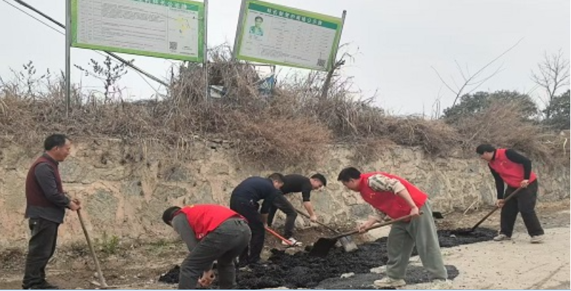 施工当天,7名新老村委干部带头上阵,党员、村民自发加入,分工搬运、搅拌水泥、清理坑槽、平整路面。大家顶着寒风干劲十足,拌料、填补、压实等工序有条不紊推进。经过连续7小时的紧张作业,原本遍布坑洼的道路焕然一新,缓解了车辆颠簸、行人易滑的难题。