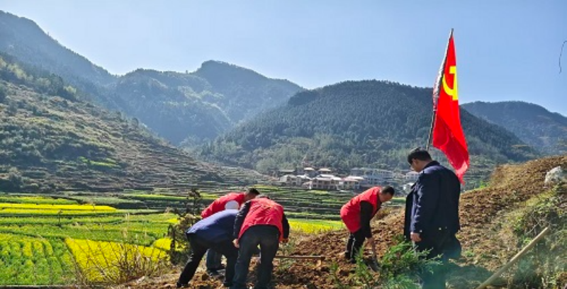 活动现场,一派热火朝天的劳动景象。大家带着饱满的热情,手持铁锹、水桶等工具,分工协作、默契配合,挥锹铲土、扶苗培土、提水浇灌,每一个环节都认真细致、有条不紊。党员干部带头冲锋在前,志愿者们活力满满,村民们积极参与,大家三五成群、干劲十足,鲜艳的党旗与忙碌的身影交相辉映,欢声笑语回荡在植树现场,用汗水浇灌希望,用双手播撒绿色。