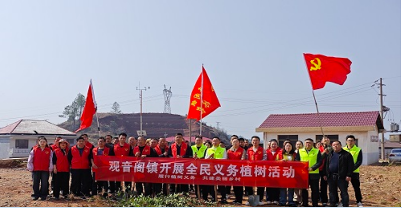 春回大地,万物复苏,在第48个植树节来临之际,为深入贯彻落实乡村振兴战略,推进绿美生态建设,切实履行全民植树义务,近日,观音阁镇组织开展以“履行植树义务 共建美丽乡村”为主题的义务植树活动,镇村干部、党员先锋队及村民代表齐聚一堂,以实际行动为家乡添绿增彩,绘就生态宜居乡村新画卷。