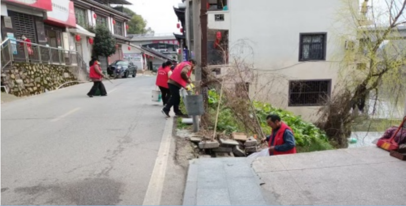 仁里冲村党员沿主干道开展环境卫生清扫