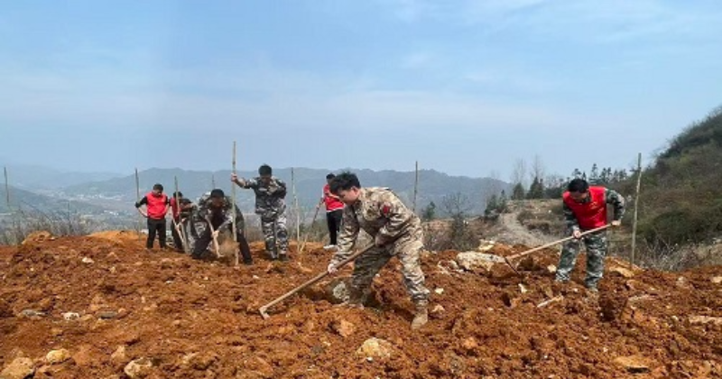 参与活动人员准时集结,统一前往预先选定的植树区域。大家分工协作,配合默契,干部职工挥锹铲土、扶苗填坑,基干民兵干劲十足,培实新土、提水浇灌。每个环节都一丝不苟、衔接有序,充分展现了团结协作、积极向上的精神风貌。一株株新栽种的树苗在和煦的春风中昂然挺立,为初春的大地增添了勃勃生机。