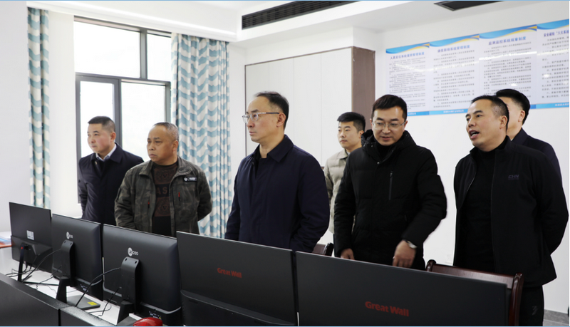 在矿区,杨廉喜走进视频监控室,通过实时画面仔细察看了企业生产运营及安全监管落实情况,详细询问安全生产资金投入和日常管理情况。随后,他与企业负责人及相关人员面对面座谈交流,听取企业发展汇报,重点了解企业在生态红线用地划定、电力用电保障、建设用地报批、道路交通完善等方面存在的实际困难,逐项分析症结,现场交办任务,明确责任单位和解决路径。针对企业反映的突出问题。杨廉喜要求,由县工信局牵头,迅速成立工作专班,落实专人专责,建立问题清单、责任清单、时限清单,实行台账式管理、销号式推进,确保企业诉求件件有落实、事事有回音。