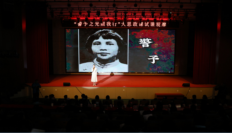课堂以情景演绎形式切入,聚焦中国共产党唯一女创始人向警予的革命事迹。主讲老师陈雪薇以“光”为主题,设置“寻光·青春何以觉醒、聚光·信念铸就丰碑、发光·热血浸染山河、续光·我辈砥砺前行”四个篇章,通过沉浸式演绎、故事化表达、互动式提问的创新形式,将宏大理论与青春视角、地方实践深度融合,打造出一堂有思想深度、情感温度、艺术感染力的思政课。课堂尾声,全体学生齐声喊出“强国有我”的青春誓言,铿锵有力的声音彰显出新时代青少年传承红色血脉、勇担时代重任的坚定决心。