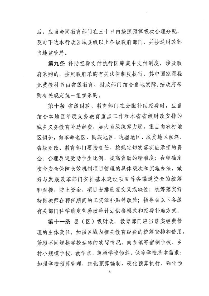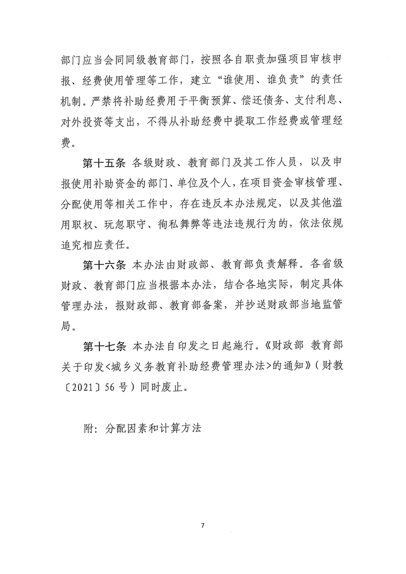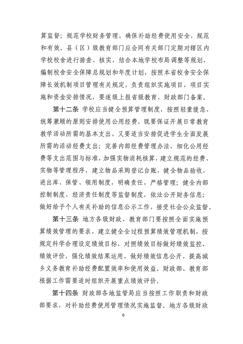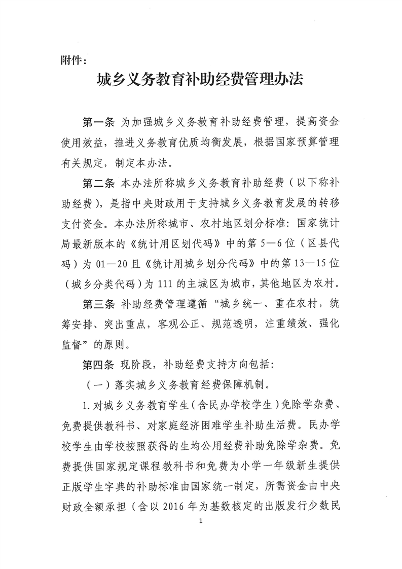 财政部 教育部关于印发《城乡义务教育补助经费管理办法》的通知