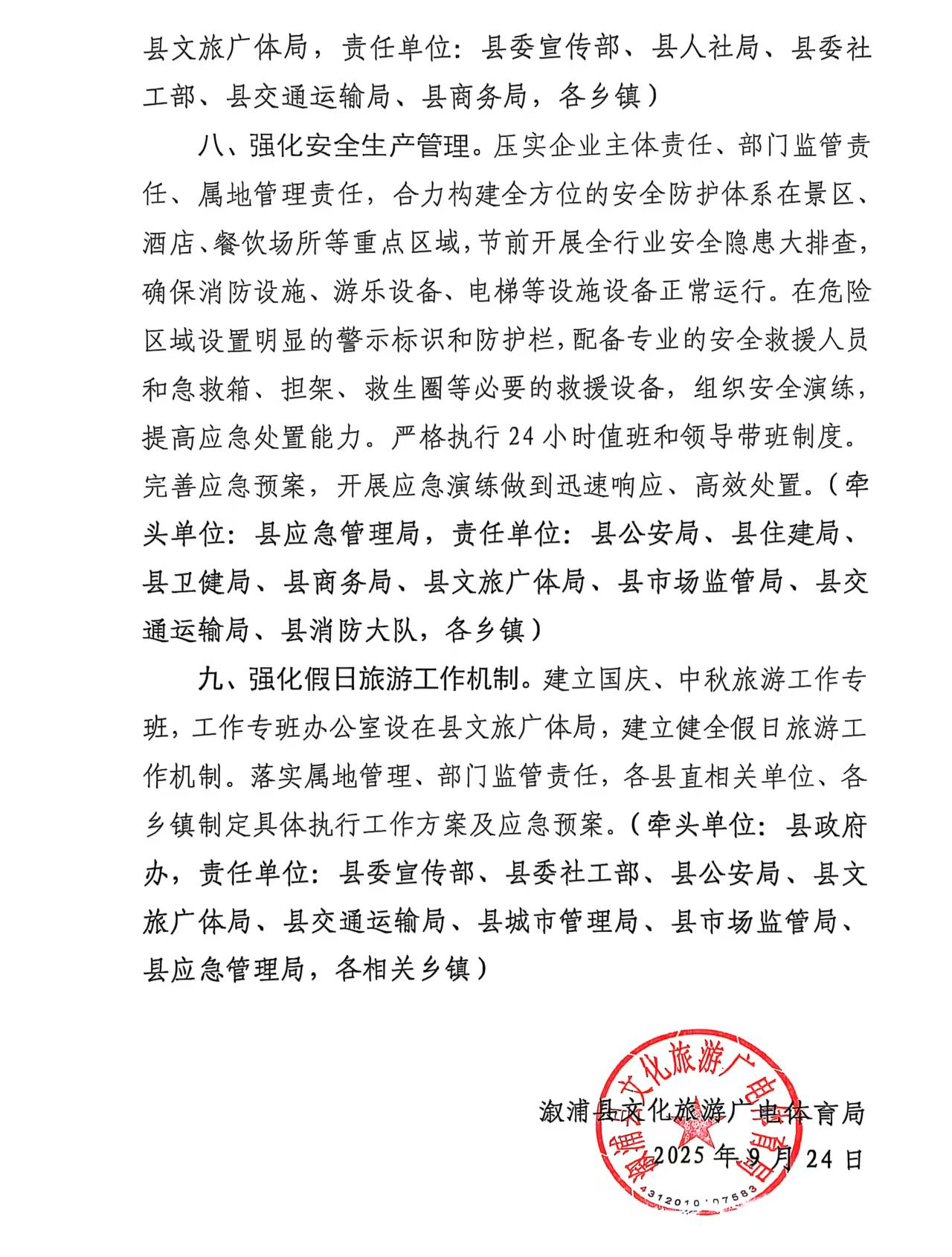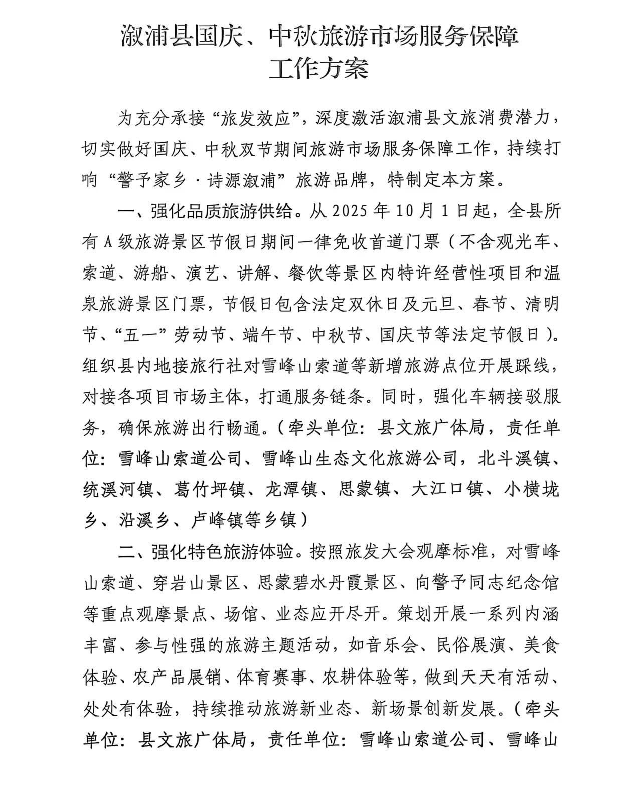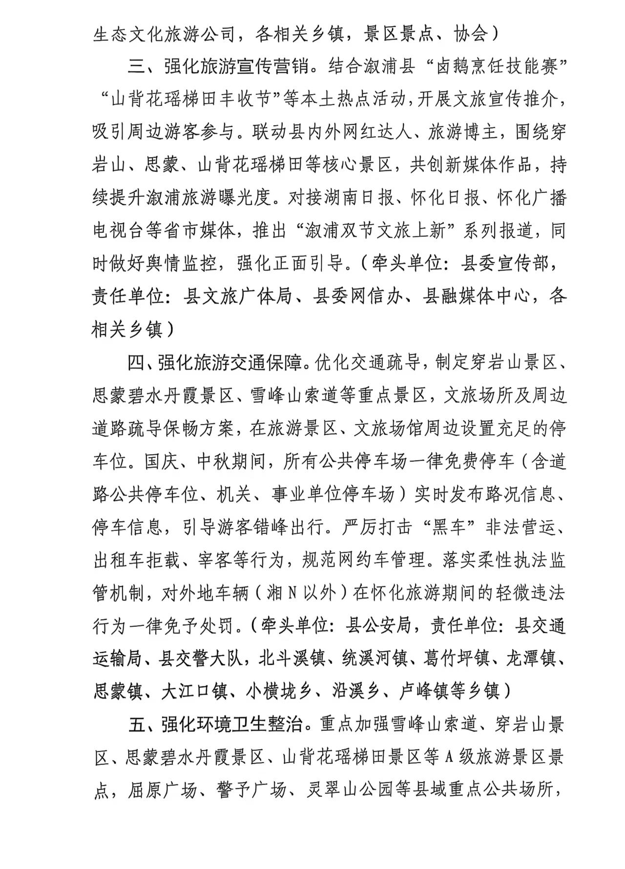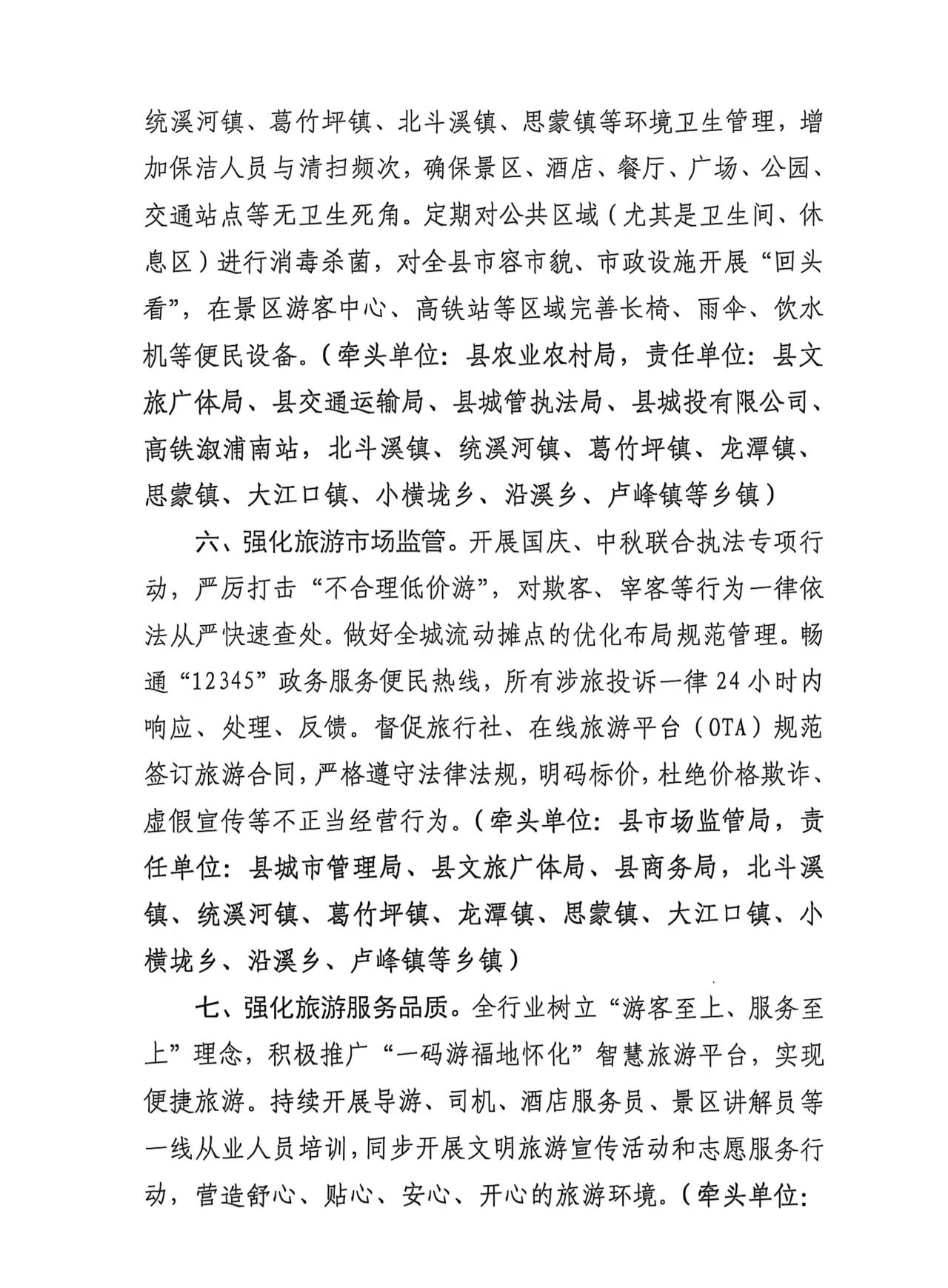 溆浦县国庆、中秋旅游市场服务保障工作方案