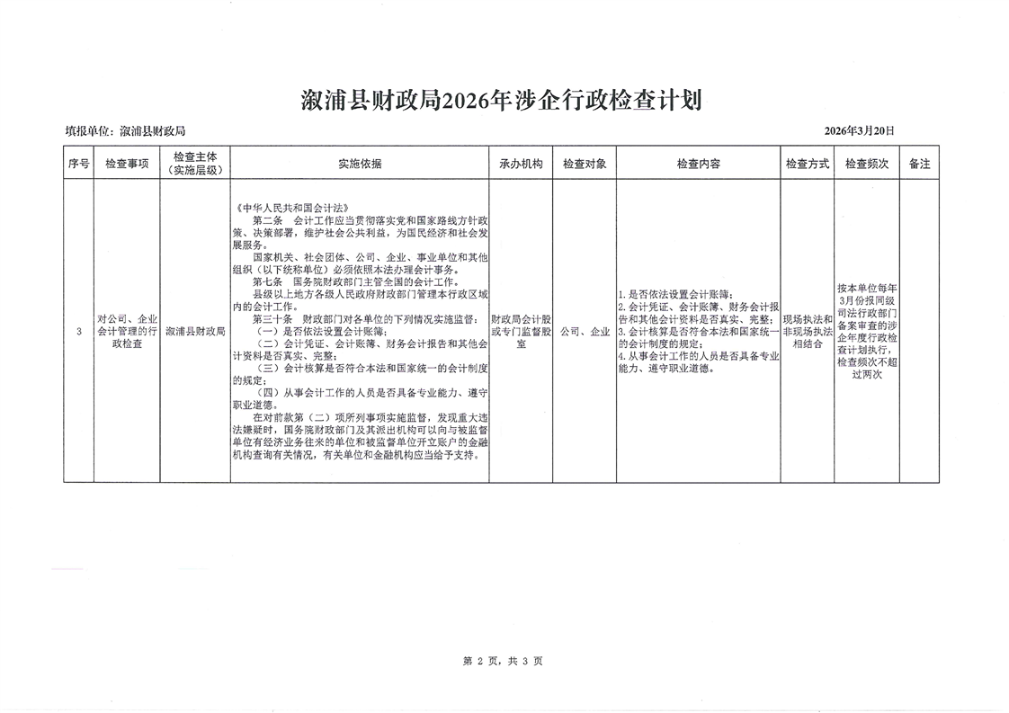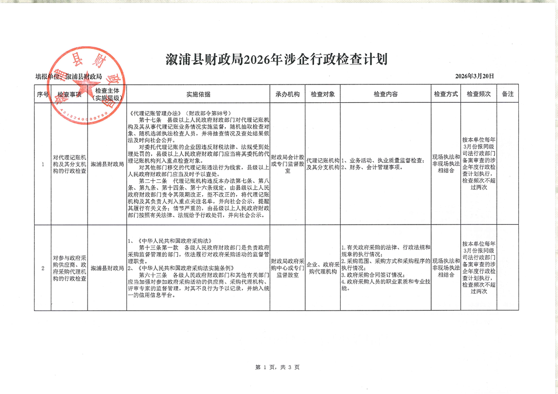 溆浦县财政局2026年涉企行政检查计划.pdf
