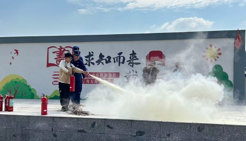 上午10时,演练正式开始,演练设定为:学校综合楼2楼教室发生火灾,发现起火后,学校老师立即启动消防警报器,并拨打119报警。学校老师指导学生,用湿毛巾或手帕捂住口鼻、弯腰沿着安全出口、疏散楼梯有序、快速地撤离火灾现场,全校师生从教学楼内全部转移到操场安全区域。演练结束后,大队宣传人员结合近期发生的典型火灾案例,向师生们讲解火灾的危害性,围绕校园消防安全,按照“会报警、会疏散、小火会用灭火器、大火会用消火栓”的目标,向师生们介绍了发生火灾时如何报警、扑救初期火灾、火场逃生、自救与互救、紧急避险、宿舍用火用电安全、宿舍和家庭防火等消防安全知识。随后,大队宣传人员还详细讲解了灭火器的正确使用方法,让部分学生上台进行灭火器扑救油盆火灾的演练体验通过亲手操作,正确掌握如何使用灭火器,巩固培训效果。