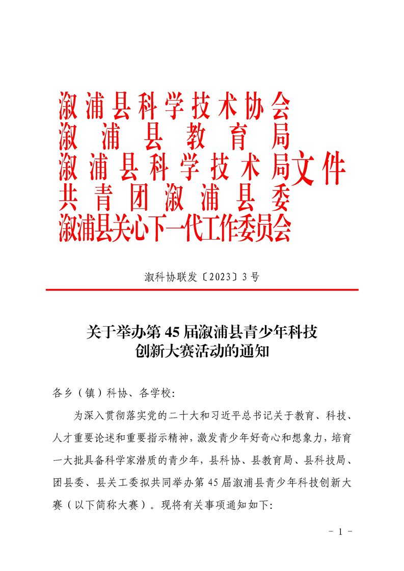 关于举办第 45 届溆浦县青少年科技创新大赛活动的通知