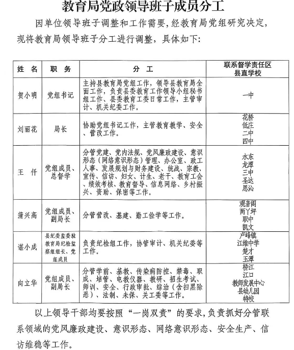2026年上半年领导分工