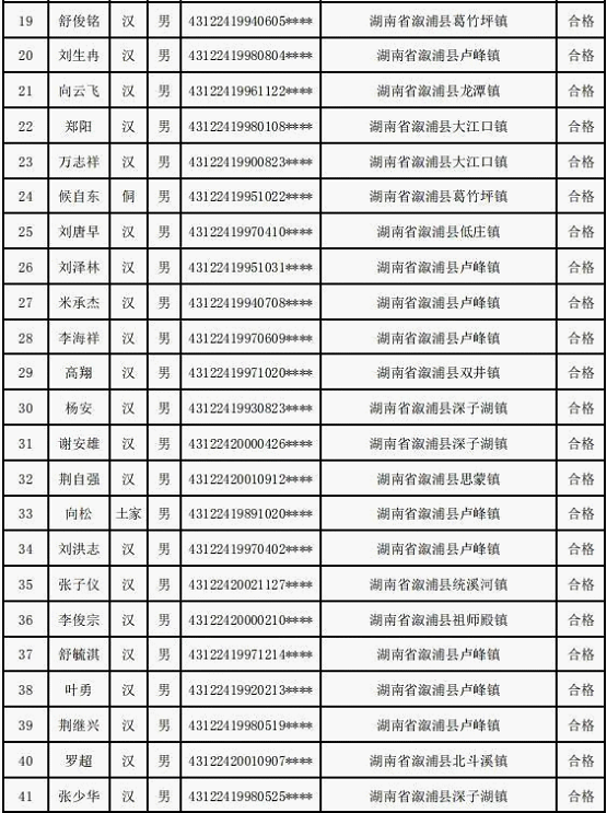 为更好维护溆浦县社会稳定,强化治安管理,根据湘政办发〔2016〕72号文件规定,经溆浦县委、县政府同意,近期按照辅警招聘程序及要求,通过考试、体检、政审,现将拟招聘44名治安辅警(男性)公示如下: