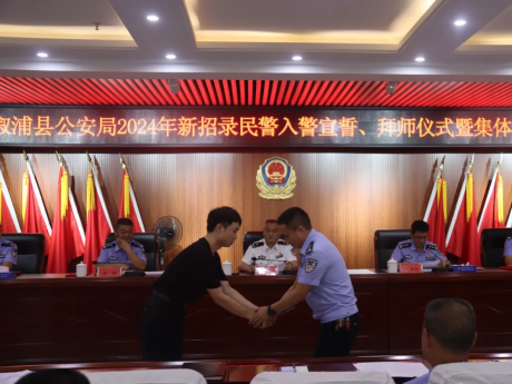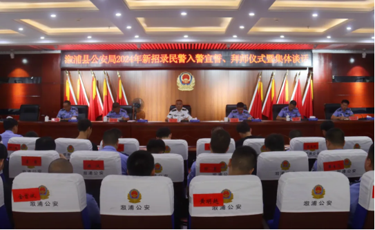 7月12日上午,溆浦县公安局举行2024年新招录民警入警宣誓、拜师仪式暨集体谈话会议,副县长,县公安局党委书记、局长强龙出席会议并讲话,在家局领导、相关部门负责人及新警“师父”参会。会议由局党委副书记、政委艾俊杰主持。