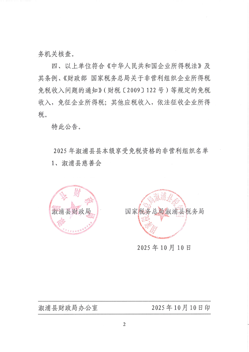 关于公布2025年溆浦县县本级享受免税资格的非营利组织名单的公告