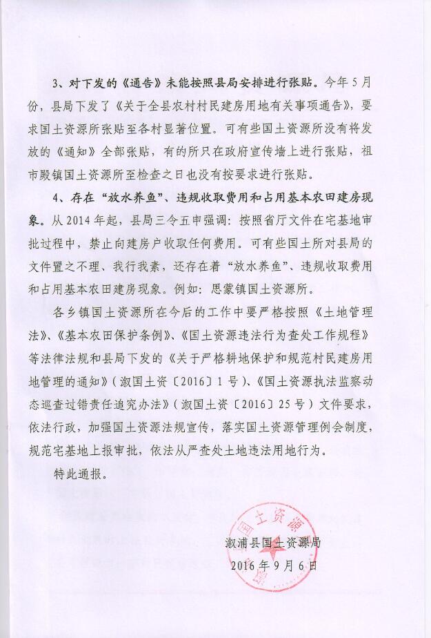 2016年上半年国土资源动态巡查和耕地保护工作检查情况通报