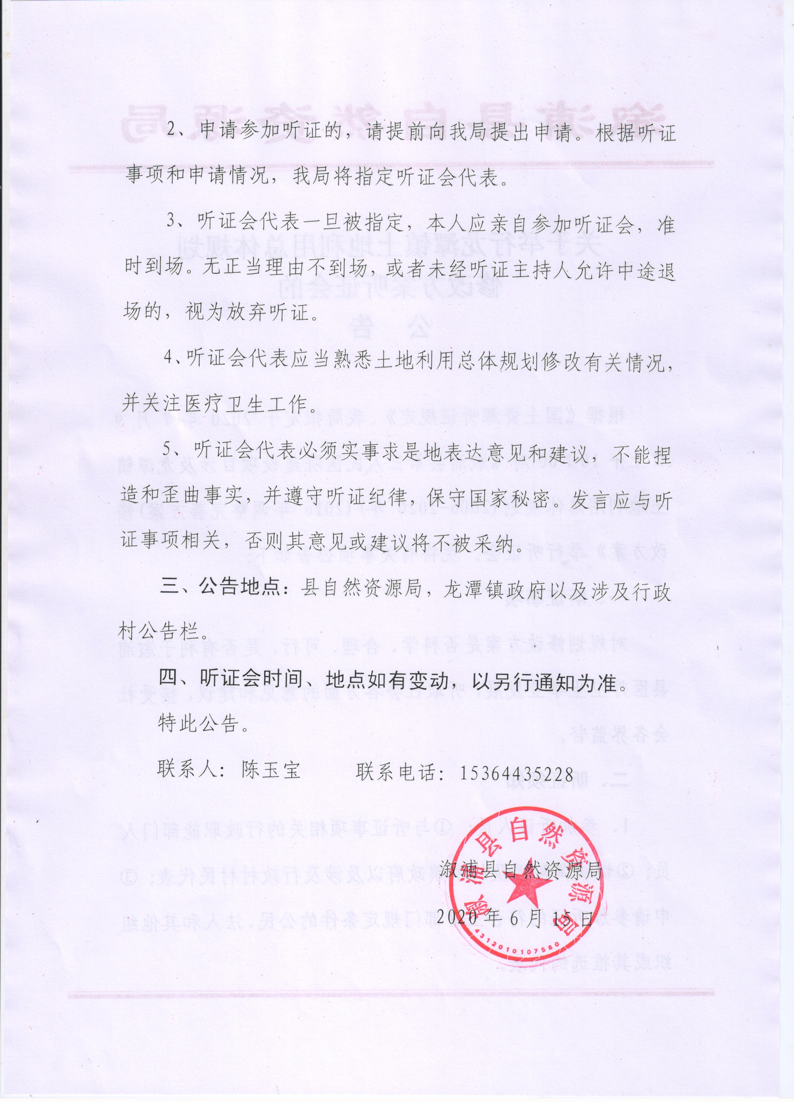 关于举行龙潭镇土地利用总体规划修改方案听证会的公告