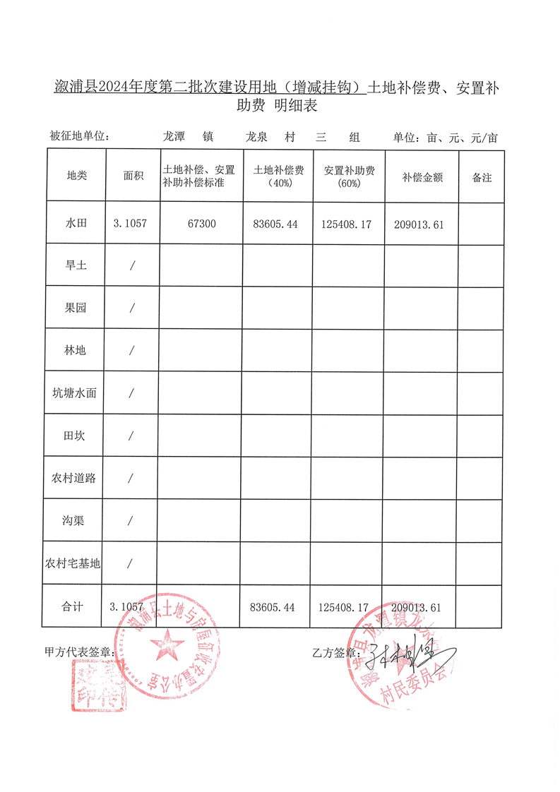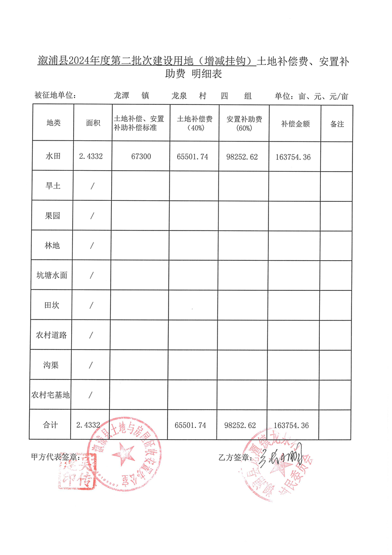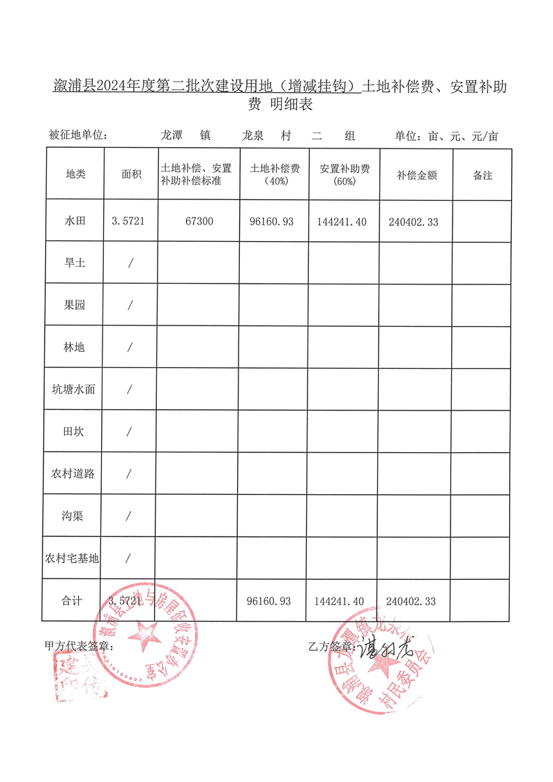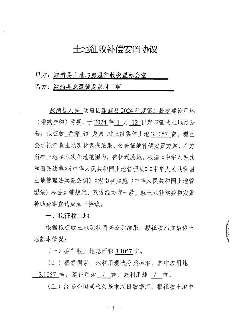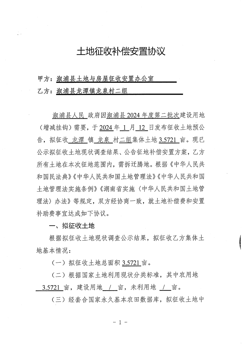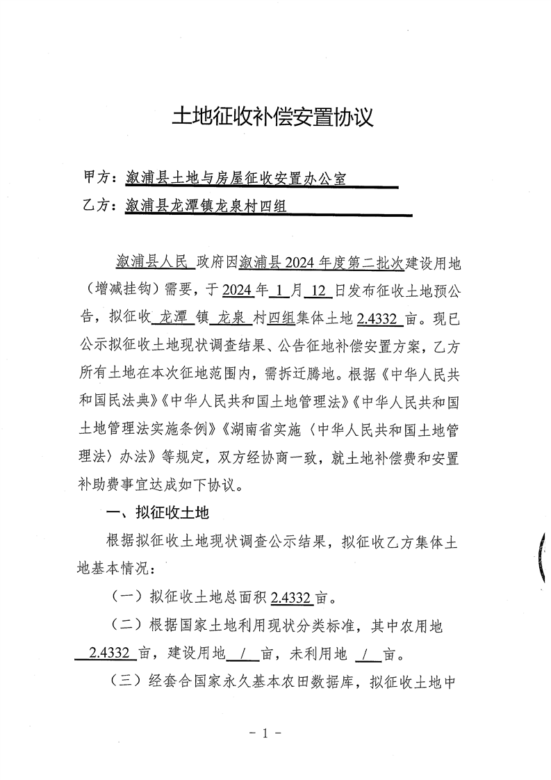 溆浦县2024年度第二批次建设用地(增减挂钩)安置协议