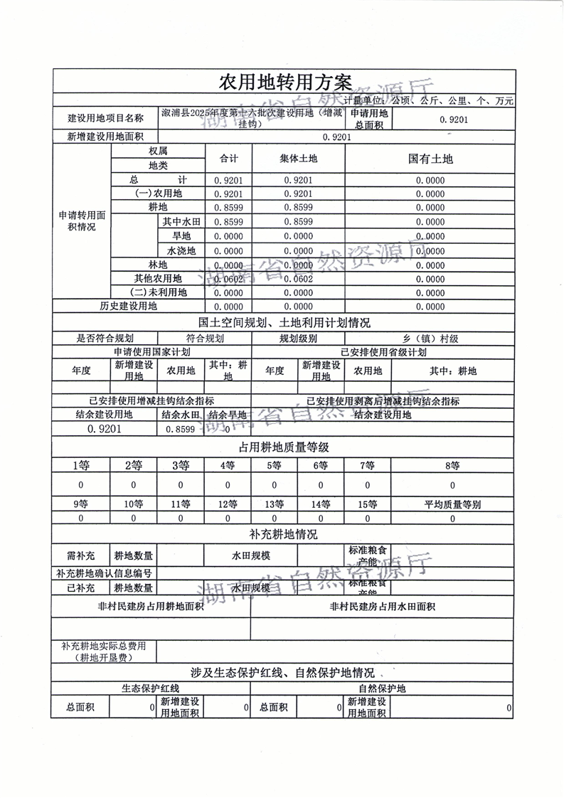 溆浦县2025年度第十六批次建设用地(增减挂钩) 农用地转用方案