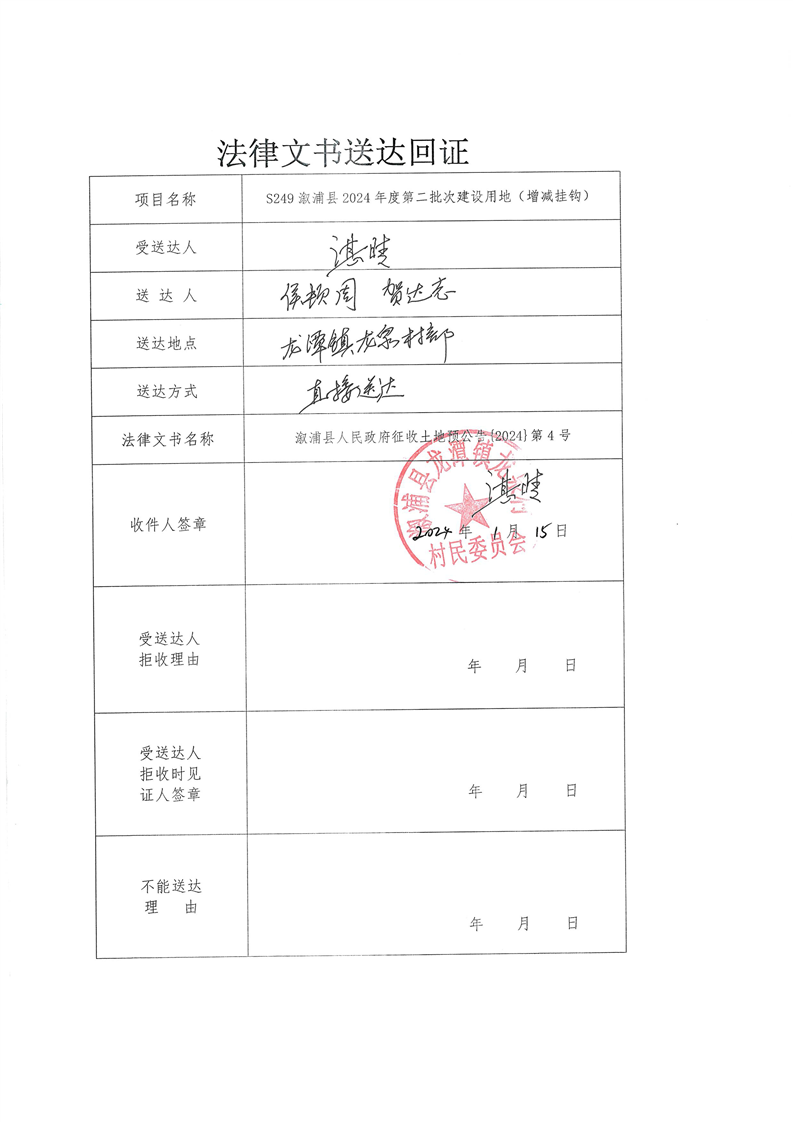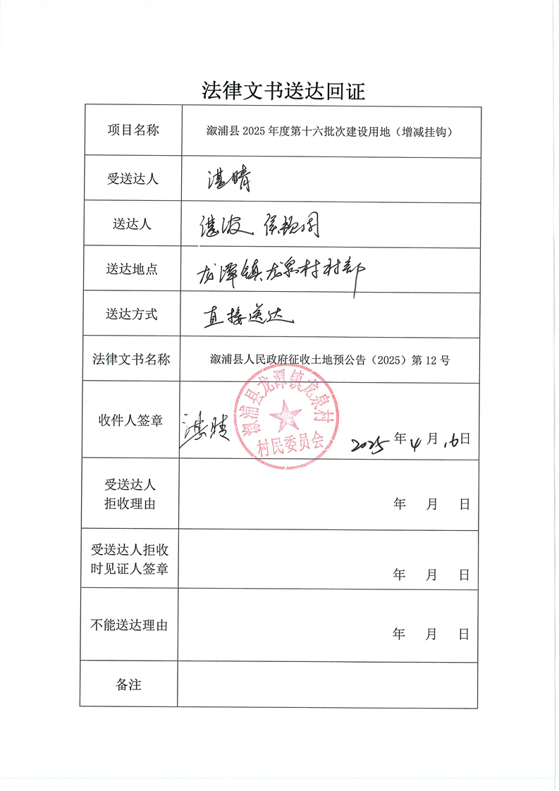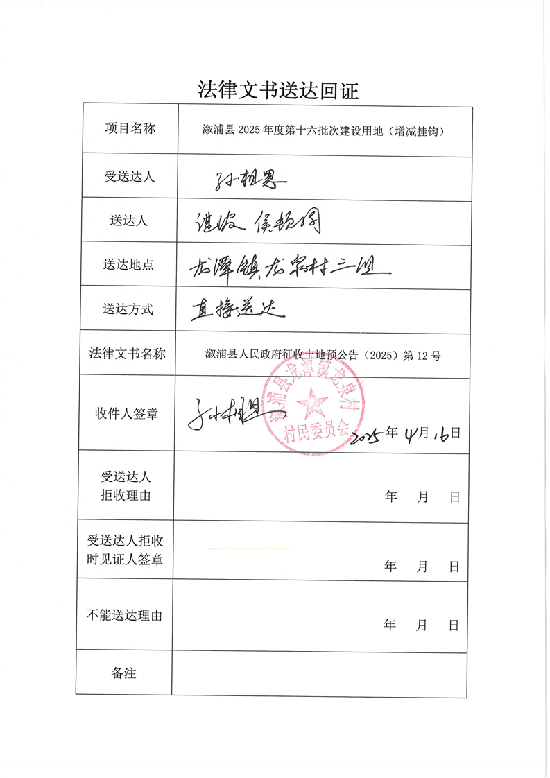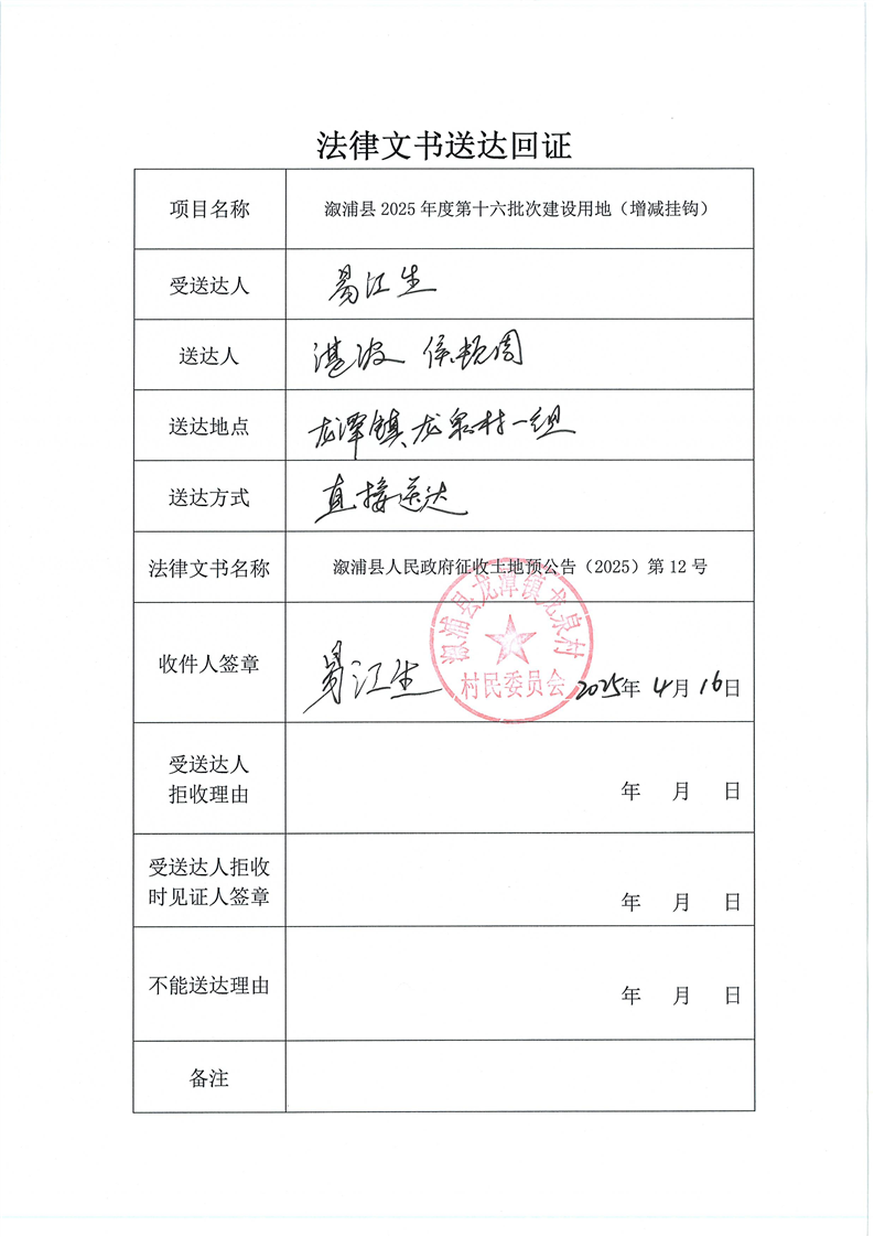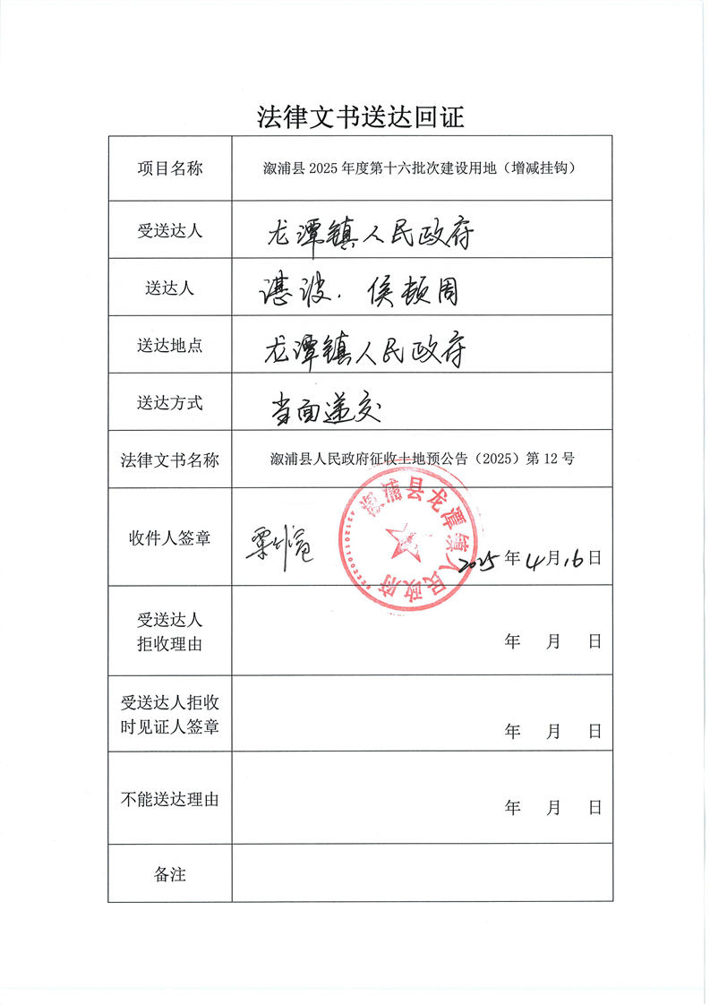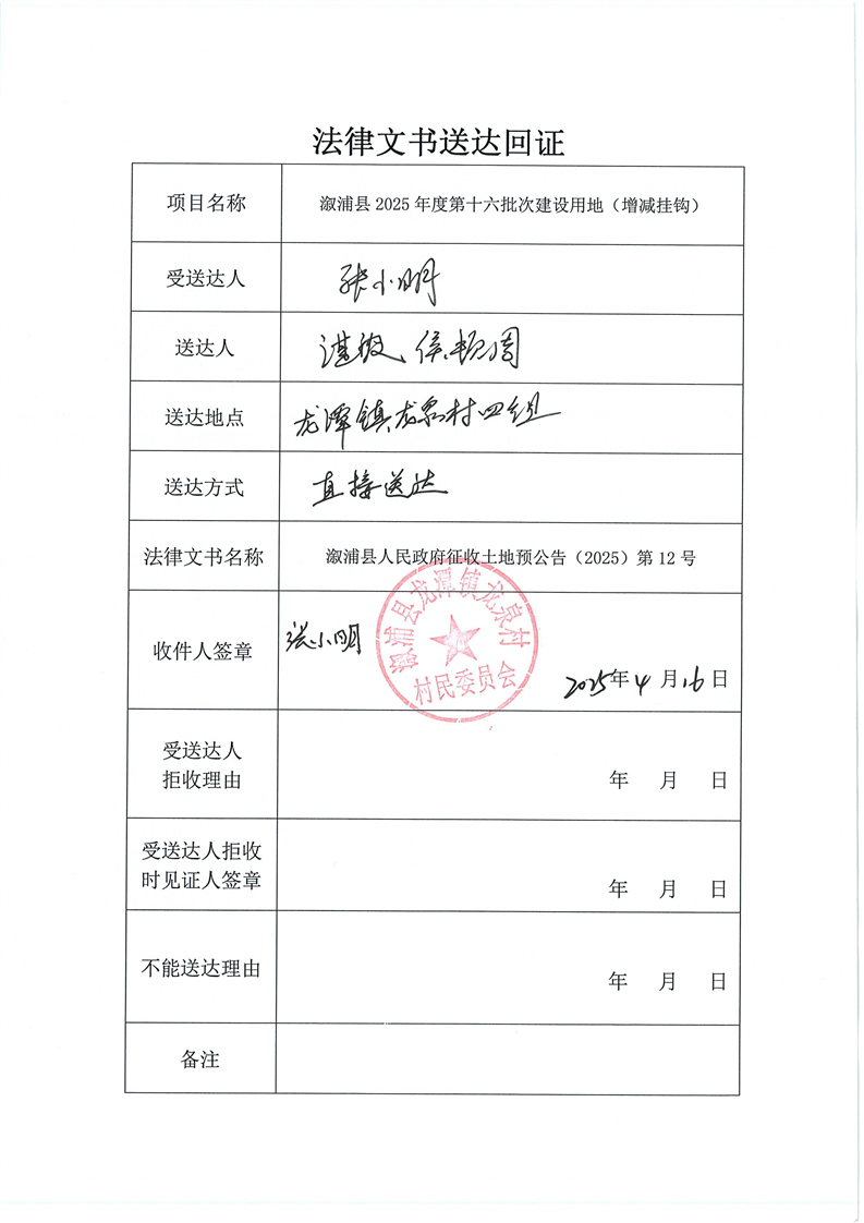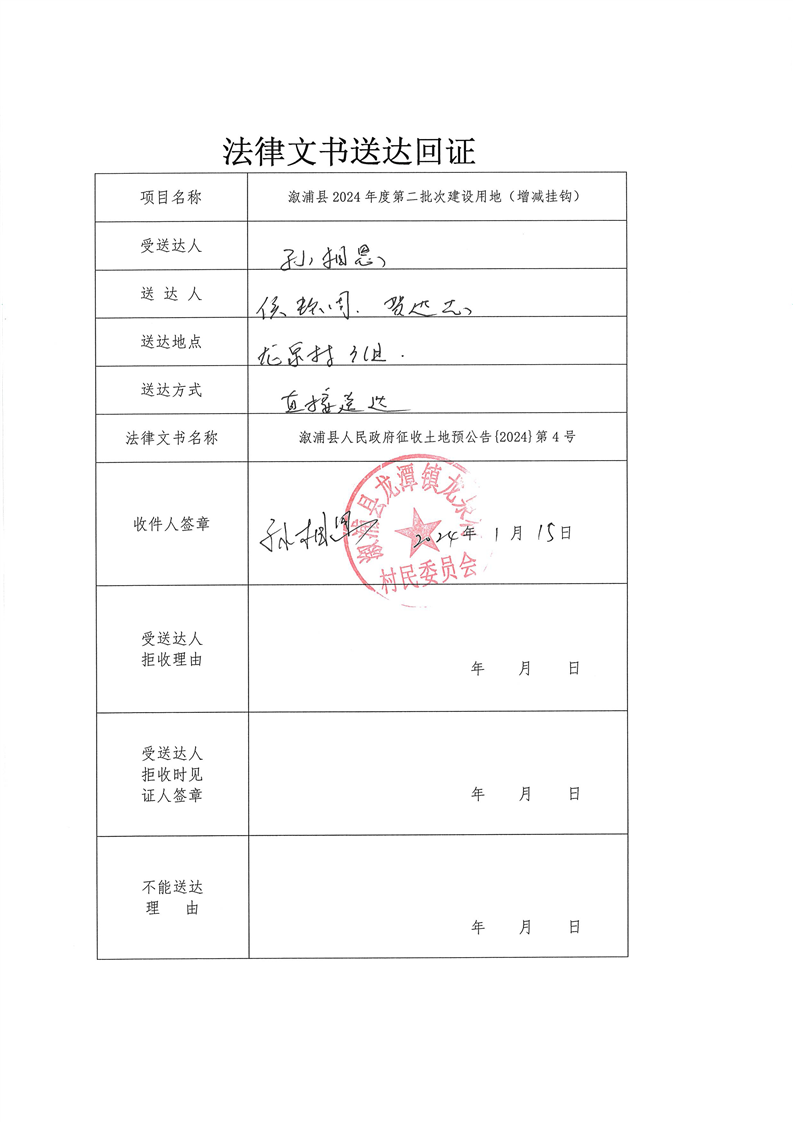 溆浦县2024年度第二批次建设用地(增减挂钩) 预公告及送达回证
