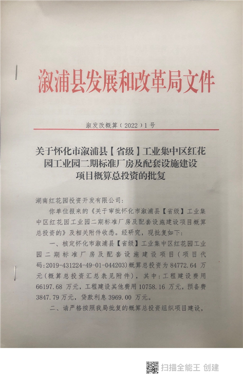 怀化市溆浦县【省级】工业集中区红花园工业园二期标准厂房及配套设施建设项目
