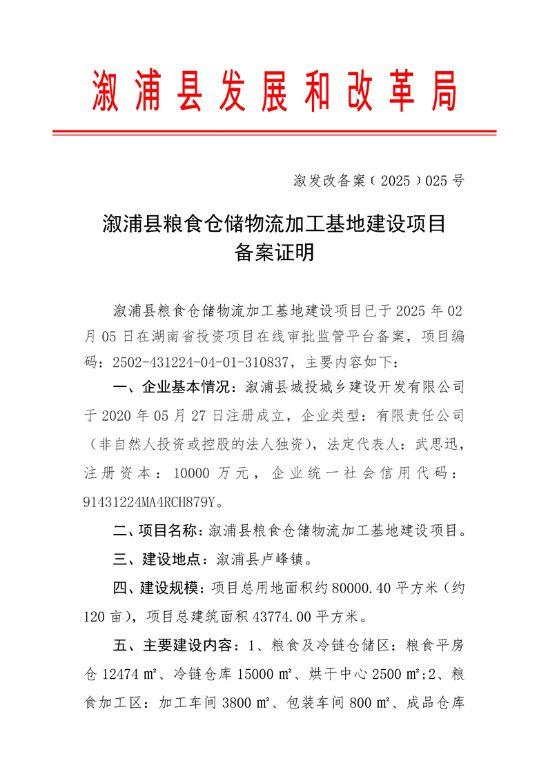 溆浦县粮食仓储物流加工基地建设项目
