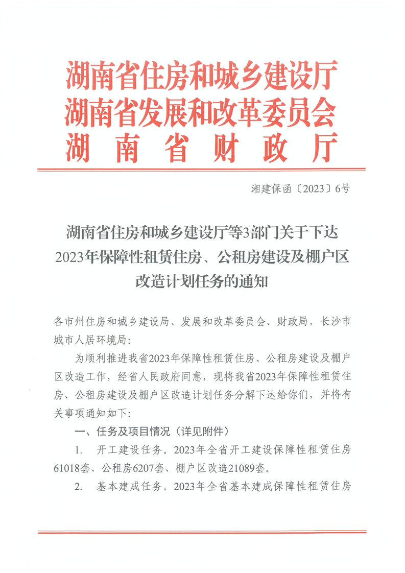 2023保障性租赁住房、公租房建设及棚户区改造计划任务的通知