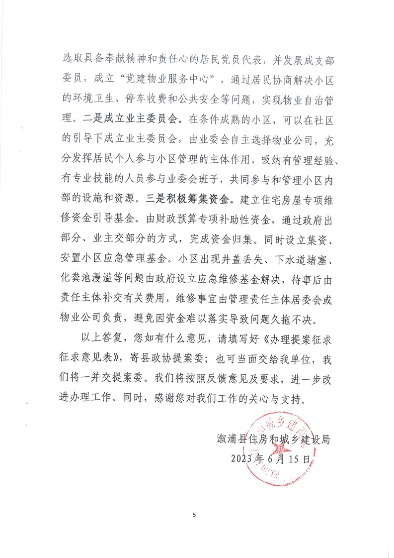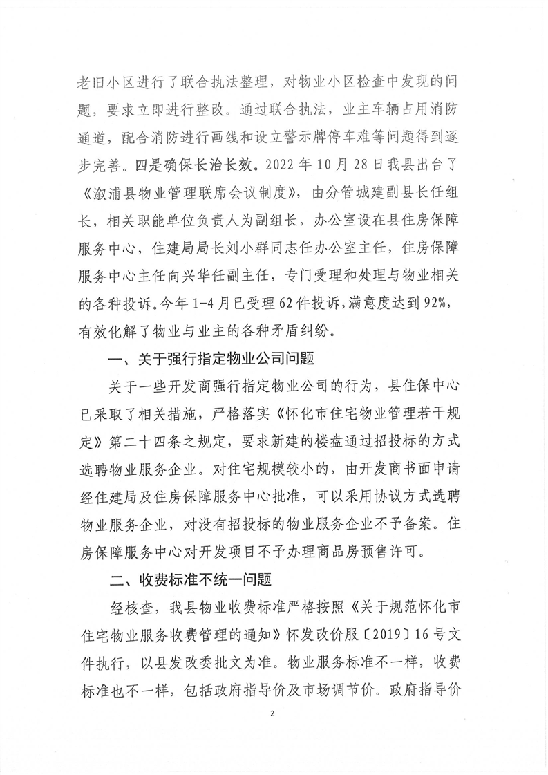 政协099号“关于加强溆浦城区物业管理”的提案