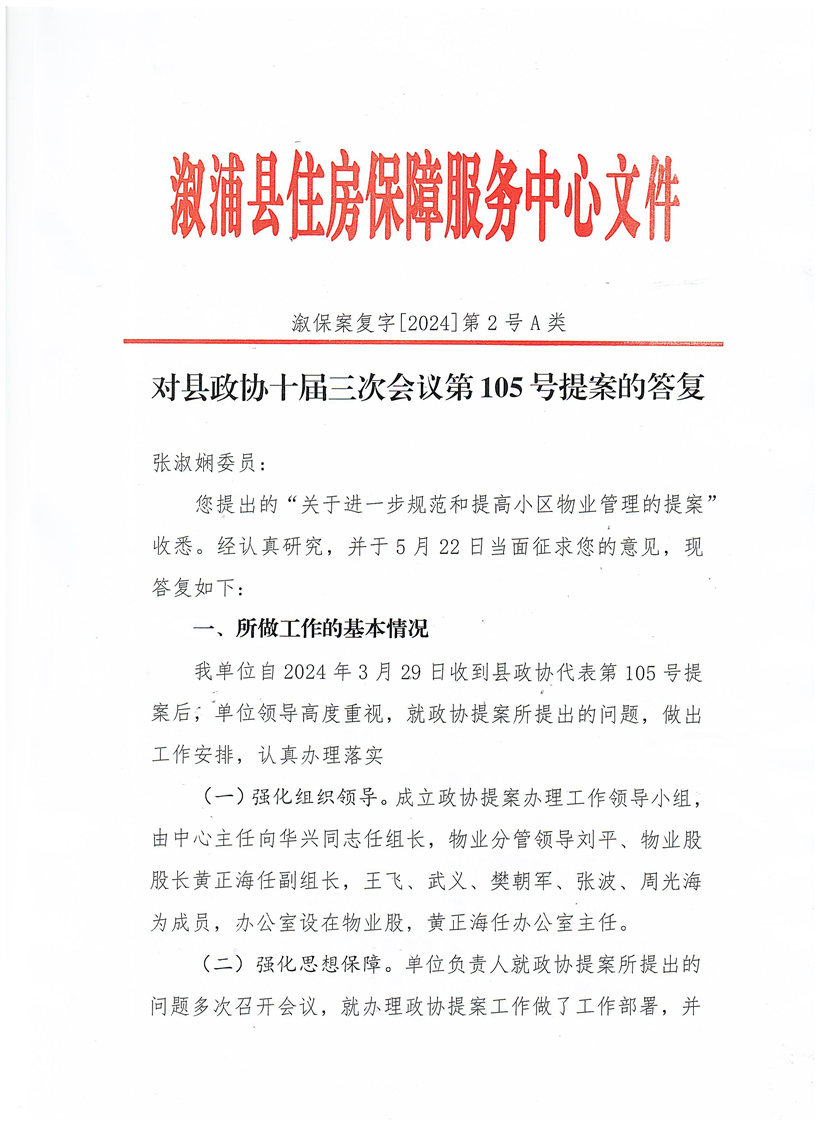 县政协十届三次会议第105号“关于进一步规范和提高小区物业管理”的提案