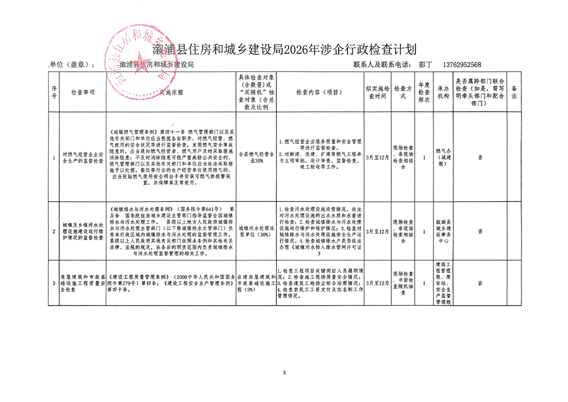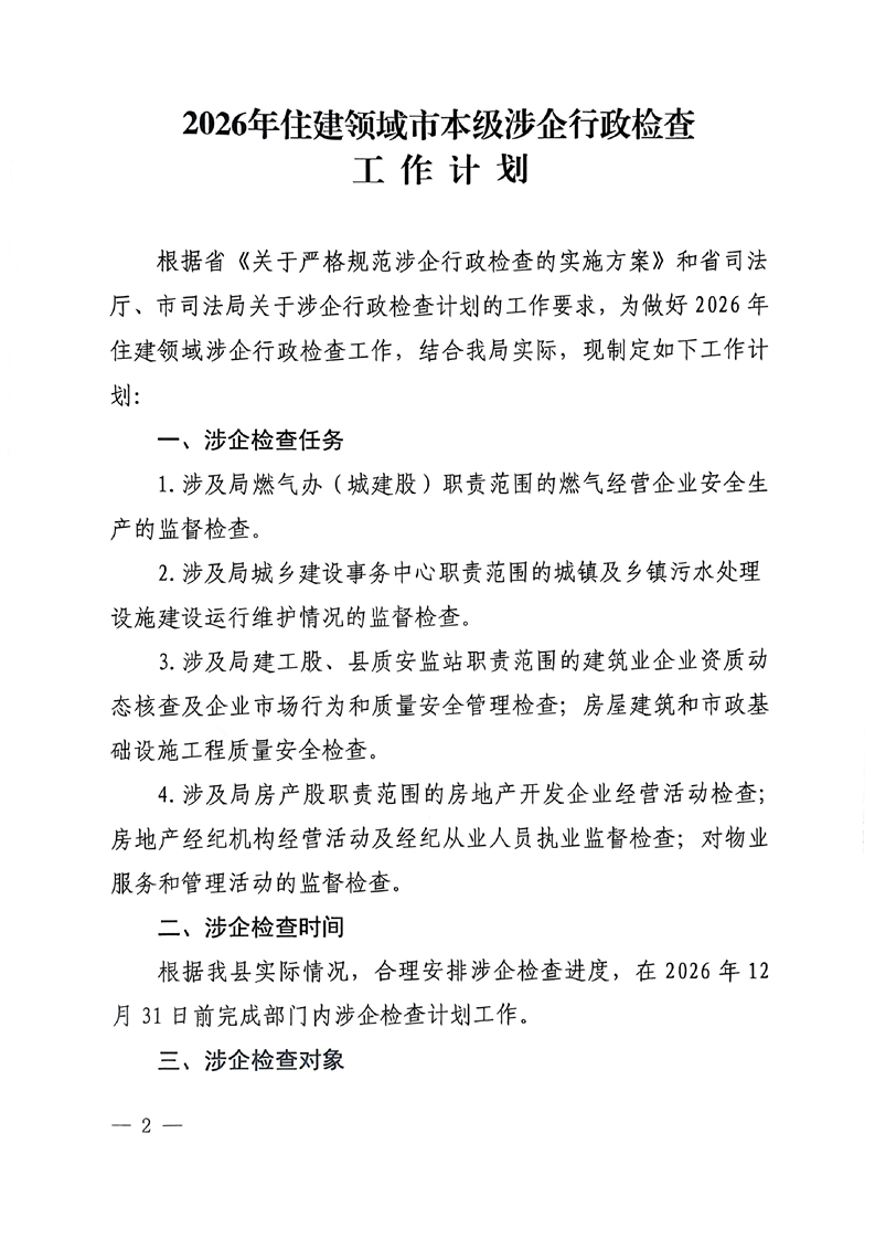 2026年住建领域涉企行政检查工作计划