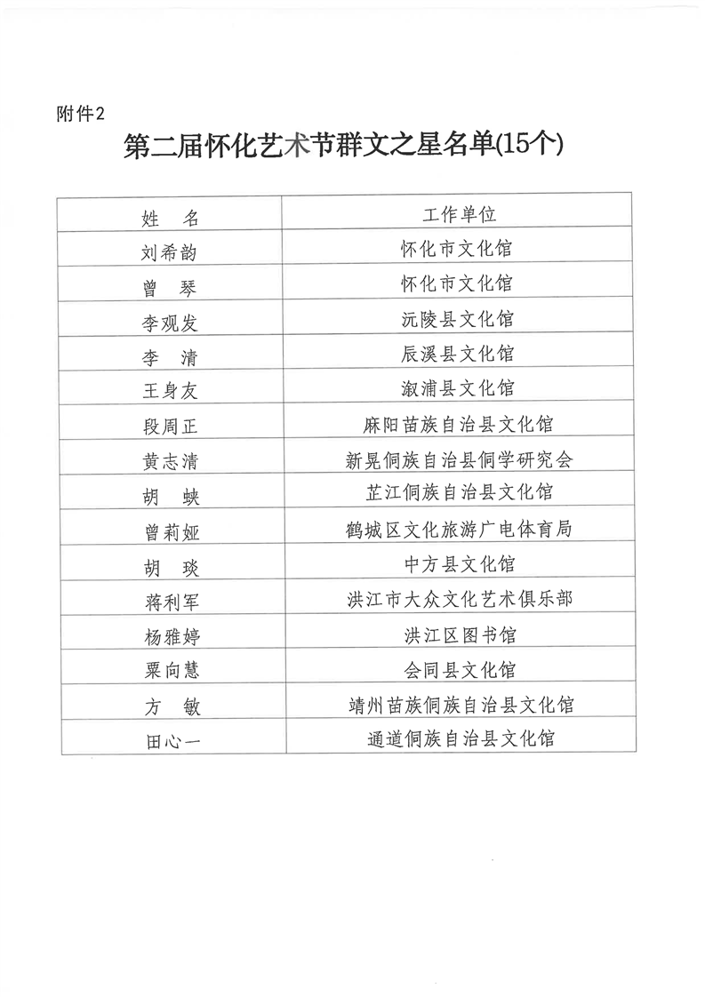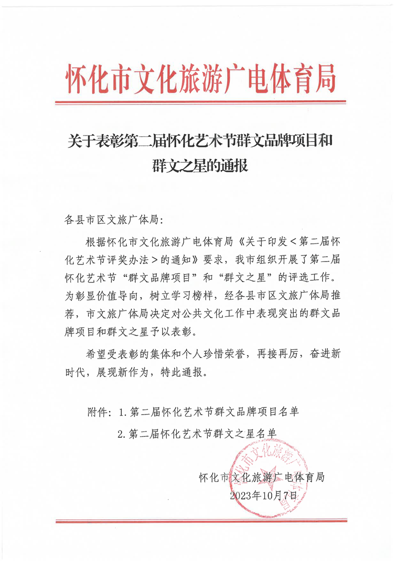 关于表彰第二届怀化艺术节群文品牌项目和群文之星的通报
