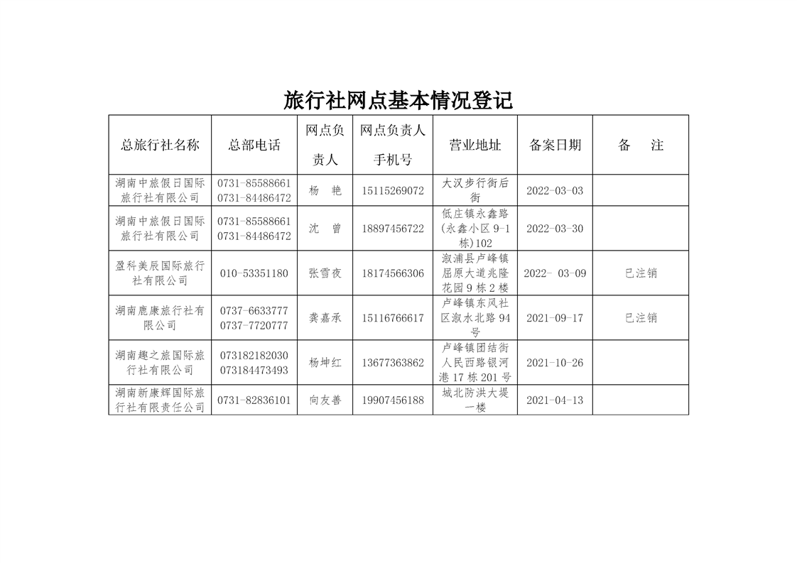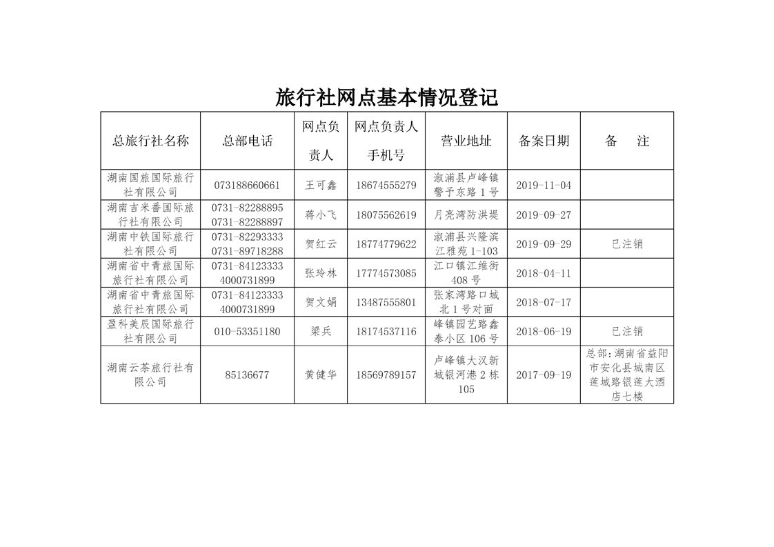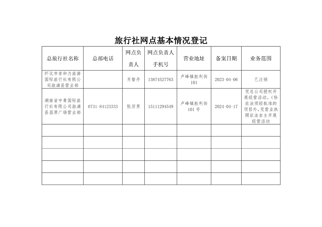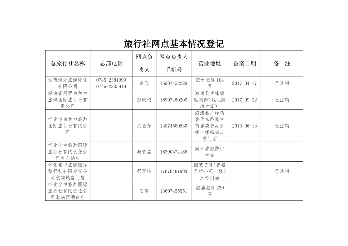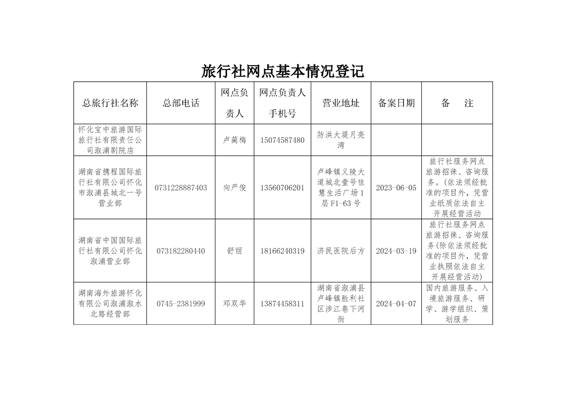 2024年溆浦县旅行社及旅游服务网点名录
