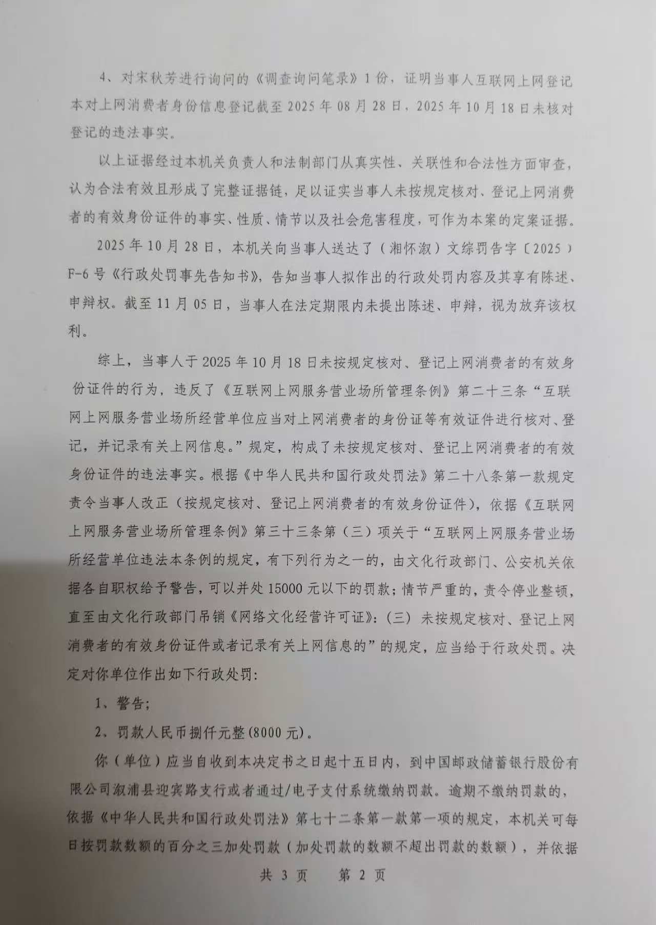 行政处罚决定书--溆浦源计划电竞馆(湘怀溆)文综罚字 〔2025〕F-6号