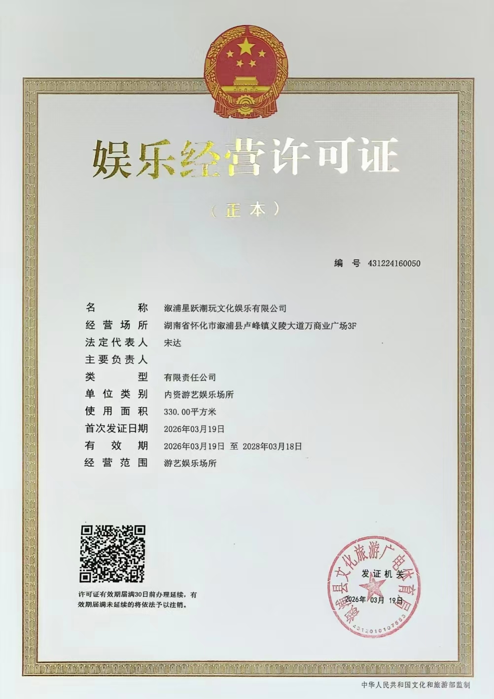娱乐经营许可证-----溆浦星跃潮玩文化娱乐有限公司