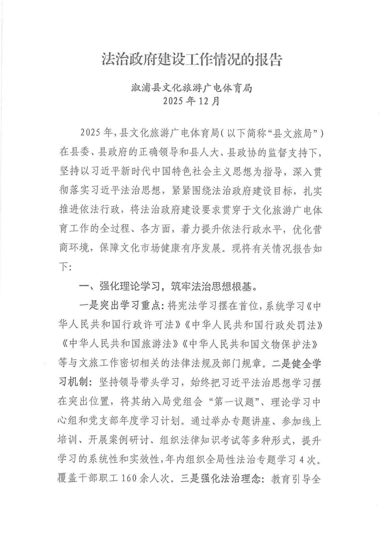 法治政府建设工作情况的报告