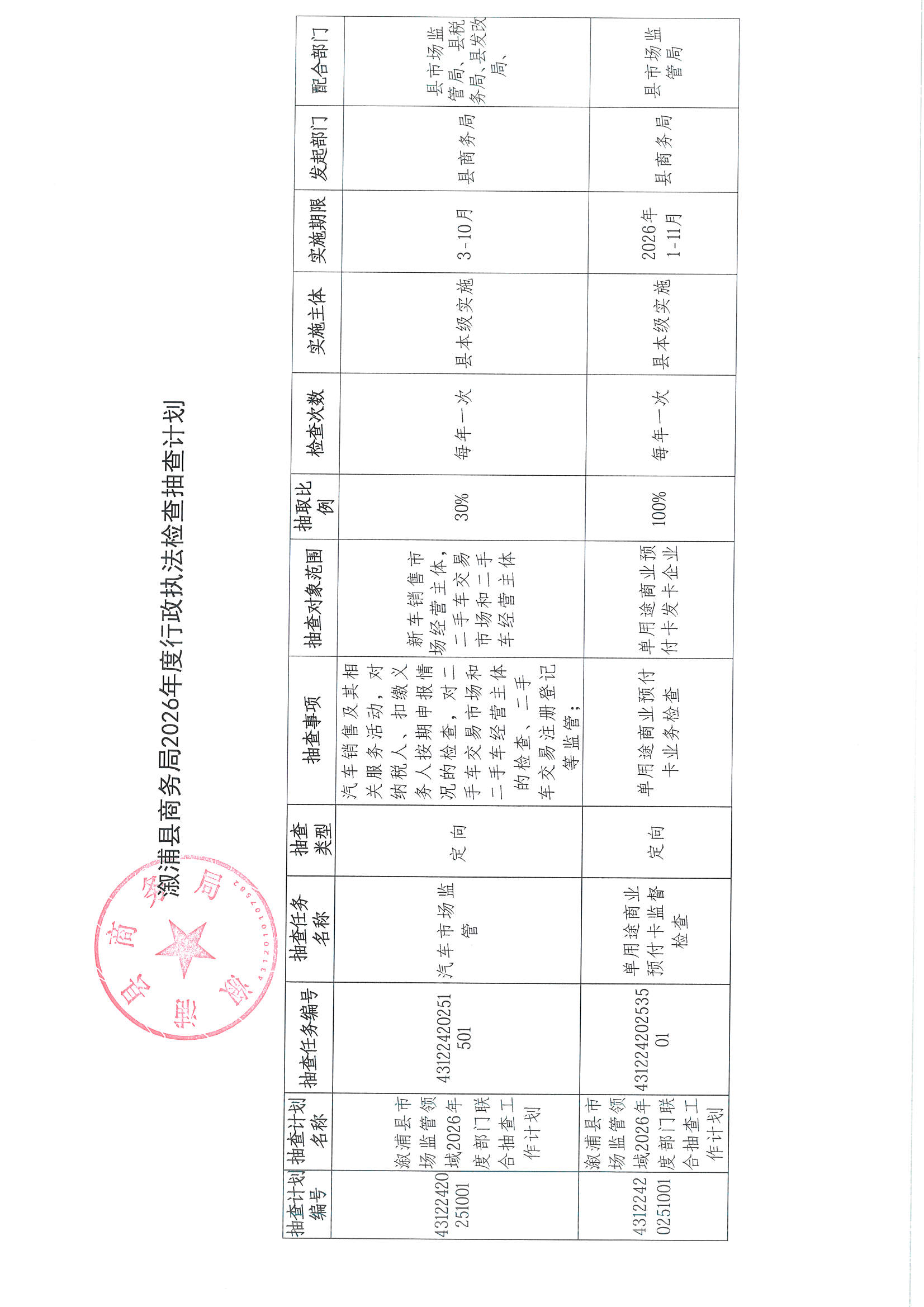 关于印发溆浦县商务局2026年度行政执法检查工作计划的通知